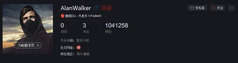 昨天晚上,Alan Walker认证并认领了网易云音乐账号,虽然这一项行为一般是国内的Booking Agency或者Co-management所为。但众所皆知,音乐人在认证之后,原本“收藏歌手”的用户将会自动关注该认证账号,粉丝数据也将可视化。