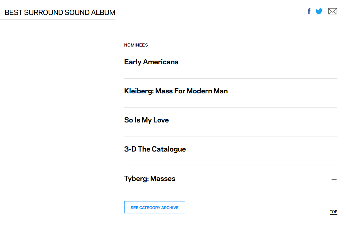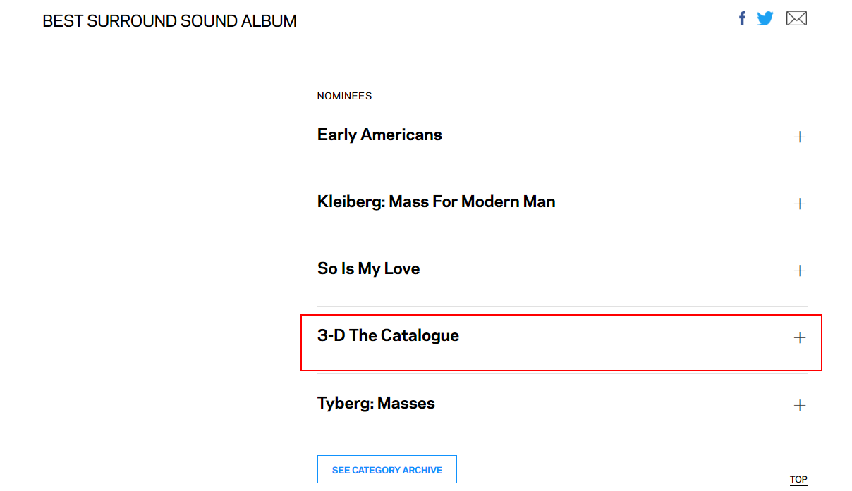 Kraftwerk巅峰回归后的《3-D The Catalogue》同时还被提名“最佳环绕声唱片”之一。虽然不敢妄下定论,但以格莱美的脾气,既然Kraftwerk今年有缘出现在格莱美提名中,就有很大的概率成为获胜者。但这只是猜测,鹿死谁手只有格莱美官方说得算。