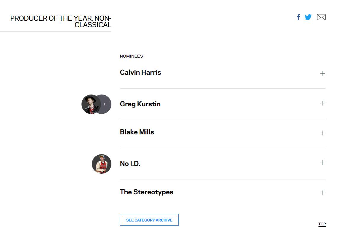 除了最佳舞曲唱片和最佳舞曲/电音专辑的颠覆三观以及“抛下”EDM的提名结果几家欢喜几家愁以外,还有哪些是值得电子音乐爱好者关注的?如果你仔细查看了刚才的列表,你会发现非古典年度最佳音乐制作人中,Calvin Harris位居提名第一。