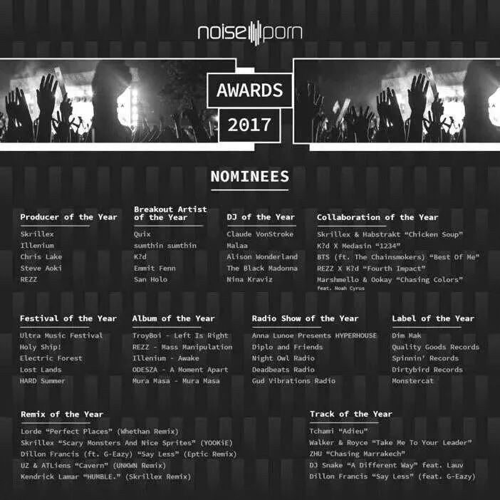 2008年成立的,主要针对Underground Dance Music,如今发展为音乐、新闻、科技、媒体等领域的主要展示渠道/平台“NoisePorn”2017年年度提名名单上也出现了Lost Lands的名字。虽然只是提名,但第一年举办就获得如此殊荣的音乐节却是寥寥无几。