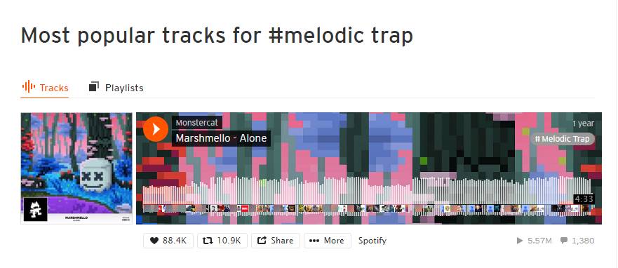 即使是在Soundcloud上,依然可以在Melodic Trap的标签下找到很多Future Bass单曲,在Future Bass标签下找到很多Melodic Trap单曲。毫不夸张地说,包括这些制作人在内,也只有很小一部分真的搞明白了两者之间极其细微的元素界定。
