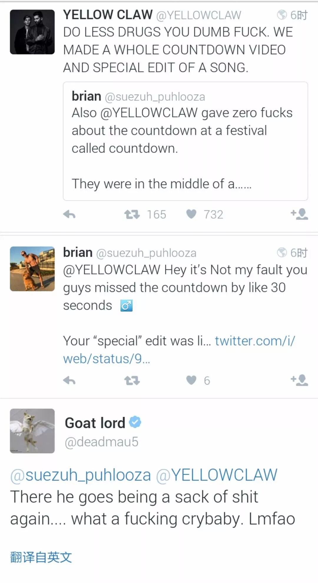Yellow Claw在国内也有大量的粉丝,或许粉丝们在得知自己心仪的组合中枪以后,心里多多少少也有一些不愉悦吧。但很大程度上,人们已经习惯了deadmau5这么做。不管你支持Yellow Claw还是deadmau5亦或是中立,我们认为这都是见仁见智的。