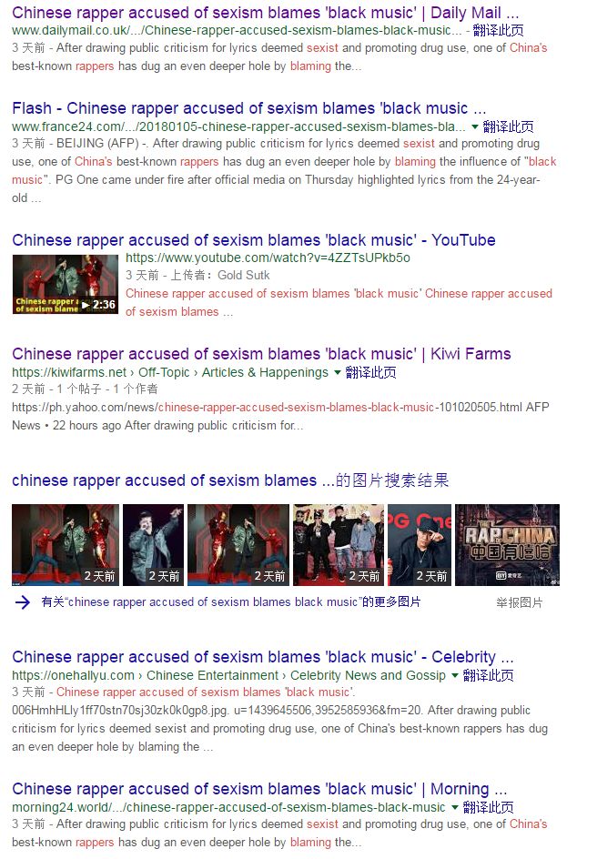 就在近日,Dailymail/France24/Kiwifarms/Gold Sutk/World News等众多西方媒体和西方网站,统一将矛头指向某一位中国说唱歌手。海量西方媒体指责,“PG One将鼓励Drugs,性别歧视等行为甩锅给黑人音乐,是不折不扣的种族歧视”。