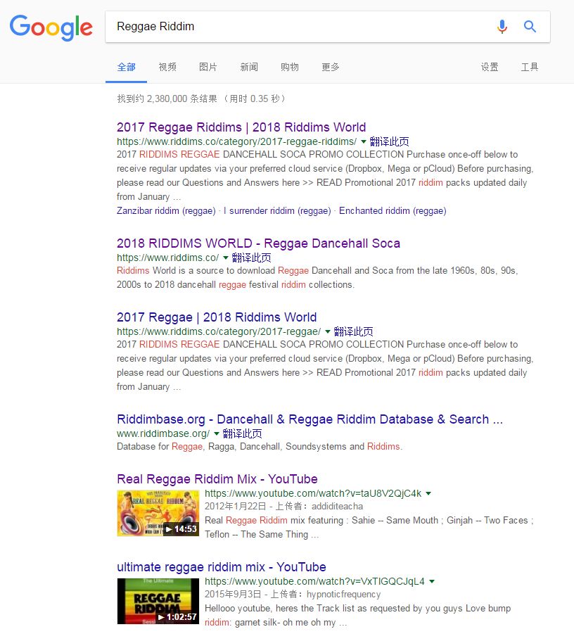那么答案就很明显了。在雷鬼音乐里,Riddim也是一个非常常见的术语,在Google上搜索Reggae Riddim,你也可以找到很多相关的音乐和资料。但是Reggae Riddim和Riddim Dubstep并不存在什么直接的相互影响,顶多只是字面上有共同之处。