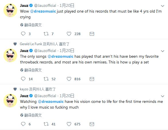 Bass House代表人物之一Jauz似乎在跟Josh Pan/Yookie着手一项了不得的合作,虽然目前还不得而知,但我们发现Jauz最近似乎迷上了实力House制作人/DJ Drezo,连续发布多条推文夸赞Drezo,甚至喜极而泣。