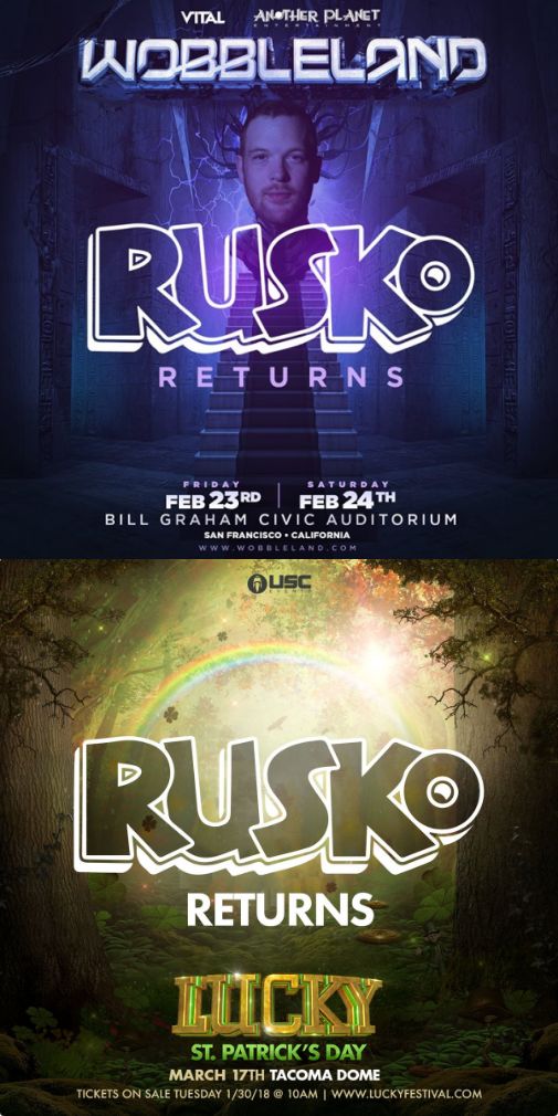 最新的回归演出安排在2月底的Wobbleland,Rusko将与Baauer作为特殊嘉宾现身。而后的三月也有Lucky音乐节的演出行程接踵而至,Rusko也预告忙碌的工作将陆续展开,这是在家人和新老朋友的陪伴下音乐旅程的重启。