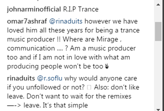 然而在Instagram/Youtube/Facebook/Soundcloud等平台的评论中,Tiesto疯狂躺枪,大量评论指向“你不能像Tiesto那样背叛Trance”。也有人提到“如果你想做其它音乐风格,你应该换个名字”。许多粉丝情绪十分激动,饱含感情的长篇大论布满评论区。