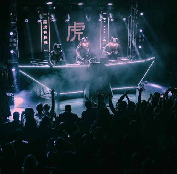 既然头盔是他们独有的特色,那么他们的演出就更是为人们所津津乐道了。Black Tiger Sex Machine将各类元素合成为他们独一无二的现场,他们采取打碟与Live Set结合的方式进行演出,并且无时无刻不戴着“Tiger Helmets”。