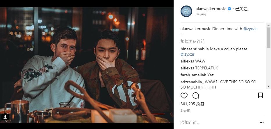 就在昨天,知名音乐监制Alan Walker,发布了一则令中国粉丝激动不已的消息。Alan Walker在中国北京与C-Pop/K-Pop歌手张艺兴共进晚餐。众所皆知,Alan Walker的粉丝里有大量的C-Pop爱好者,也不排除有很多Alan Walker和张艺兴双粉。