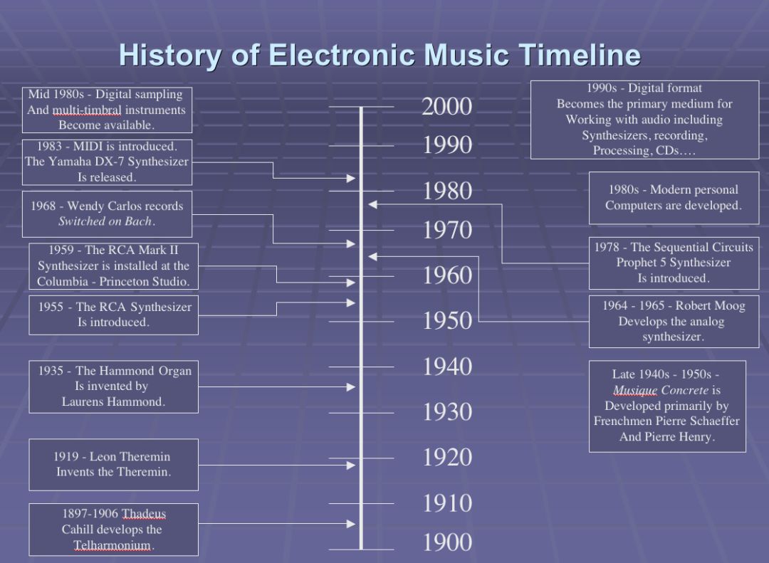 电子音乐起源于电子技术,利用电子技术发声,造就了电子音乐。没有电子乐器就没有电子音乐,当生活中的声响开始插入电流的时候,就意味着音乐的全新时代。