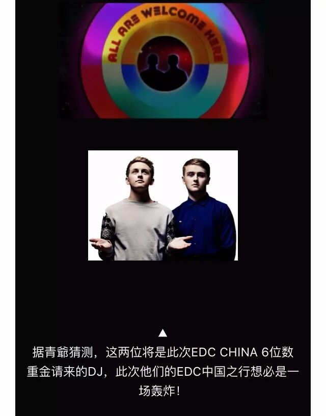 在当时,EDC中国站的官方多次强调,阵容中会有一个百万美金级别的组合。然而因为Disclosure几乎等于已经退出了舞台,或者说除了自己的活动以外,退出了其它活动的舞台,所以似乎并没有粉丝猜测到,这笔重金其实花在了Disclosure身上。