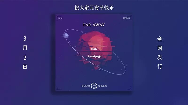 M&K与目前为止已经小有名气的DJ/音乐制作人Cyan Lpegd进行了最新曲目的合作,歌名为《Far Away》。就在不久以前,这首曲目在全网发行,更是Shelter庇护所厂牌目前为止发行的第二首单曲。音乐风格M&K被定义为Mid-Tempo。点击试听。