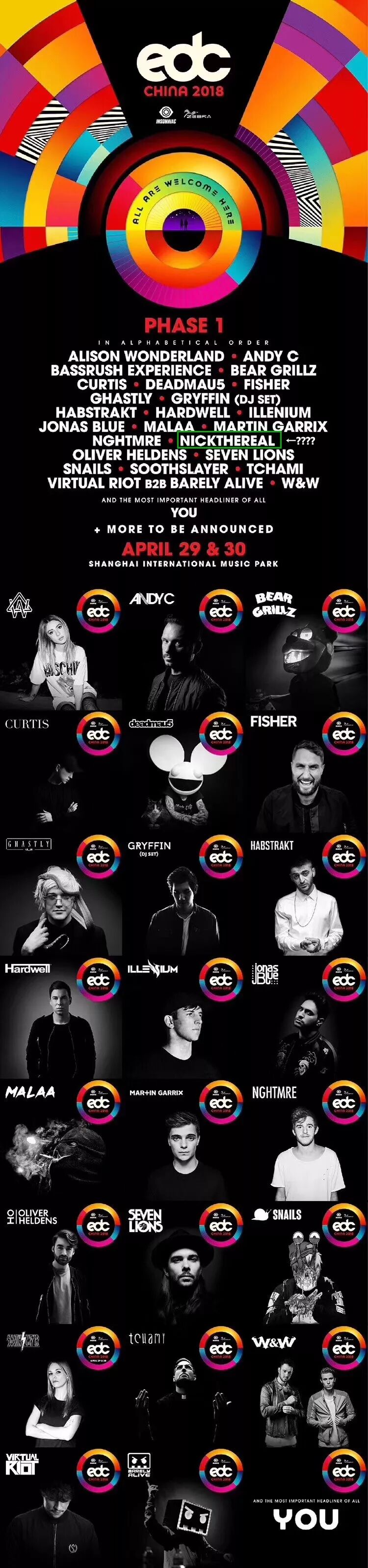 在入驻中国以后,追求丰富性的乐迷也希望艺人阵容有更多的内容以及含有更加宽泛的电子音乐覆盖。在前段时间,EDC中国站的官方公布了阵容的Phase 1,也就是第一阶段。如果你还不知道,先看看吧。