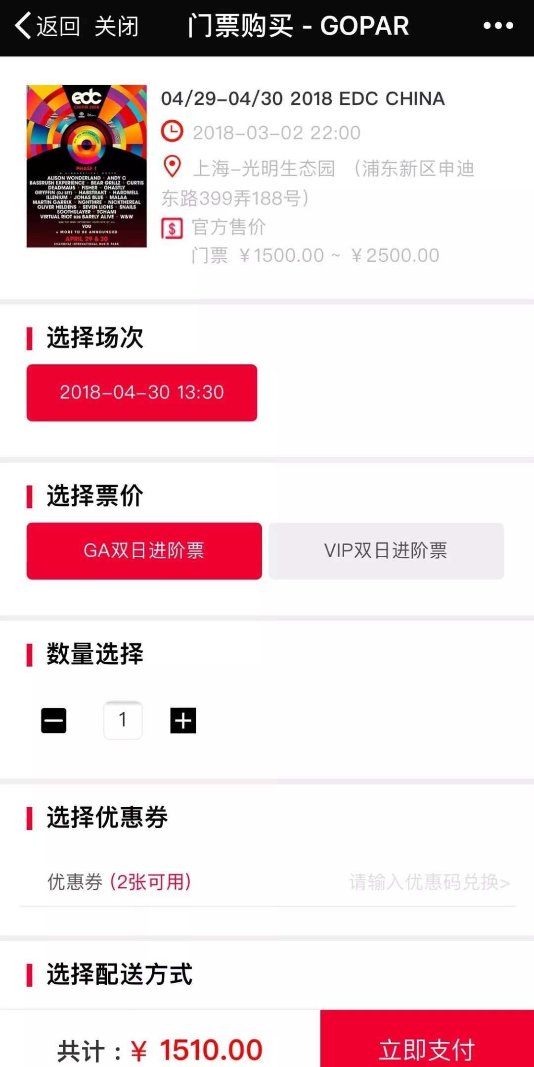 在一票难求的电音节市场当中,EDC的门票似乎也抢手到了极致。但你知道怎么样用最省钱的方式购买门票吗?在官方认证的几大购票网站中,在GOPAR上,还有最后一波GA双日进阶票和VIP双日进阶票,这是你目前购票的最好渠道。