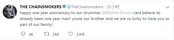 一个很有趣的现象,当你拥有一首超级热单的时候,别人是否记得你这个人已经不重要了,反正记得你的音乐就够了。The Chainsmokers这个就是这个情况。在21小时以前,他们在推特上宣布,Matt McGuire已经加入他们一年了。