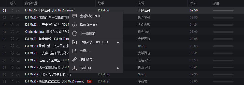 《七色云彩 (DJ Mr.Zi Remix)》其实是Sergio的《Whitout You》加上了影视台词。《我告诉你什么事最可悲 (DJ Mr.Zi Remix)》其实是Daitshi的《Yume》加上了影视台词。PDD洪荒之力 《(DJ Mr.Zi Remix)》其实是Hoaprox的《Lov3》加上了影视台词。