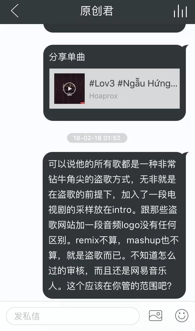 在2月18日,我们收到了粉丝的举报,并得知了一位新的盗曲玩家。我们不知道这位盗歌者是谁,也没有兴趣去了解他的资料。但我们与大家一样注意到了一件事,他的所有曲目都是盗曲,并用这种稍微升级的盗曲方式,让这些曲目成为了热单。
