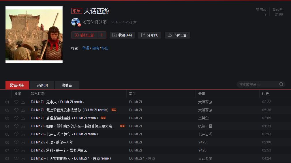 其它曲目我们就不一一扒原曲了,反正你可以听得出每一首曲目的套路都是这样的,下载一个盗版的Mashup 2,然后把一首曲目丢进去,再把一段影视台词的采样丢进去。发到网易云音乐上,坐享几千条评论。最可怕的是还没几个人指责他盗曲的行为。