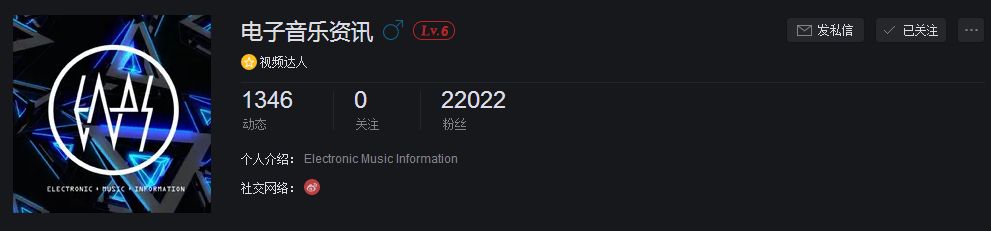 2017年年底开始,电子音乐资讯不再仅限于微信公众平台,额外开启了网易云音乐账号。至今,电子音乐资讯的网易云音乐账号已经积攒了1300多条动态,2.2万以上粉丝,并定位为专门发布视频的账号,与微信公众平台的输出有所不同。记得关注。