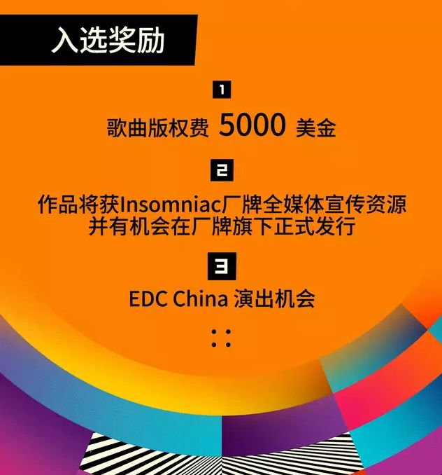 如果你的作品被选中,成为了EDC China的主题曲,那么你将获得EDC China的登台演出机会,EDC主办方Insomniac旗下厂牌发布曲目的机会,以及不少制作人非常难触及到的版权费。