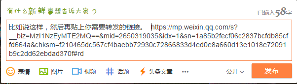 ⒉转发。微博其实可以转发你在微信公众平台、今日头条,甚至各大新闻网站、媒体网站,以至于是官网的链接。我们也十分鼓励大家将我们的文章转发到微博上。方式也很简单,直接将文章的链接复制,然后发布微博动态,往往会自动转化为文章链接。
