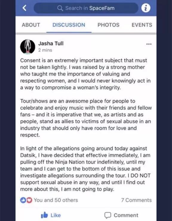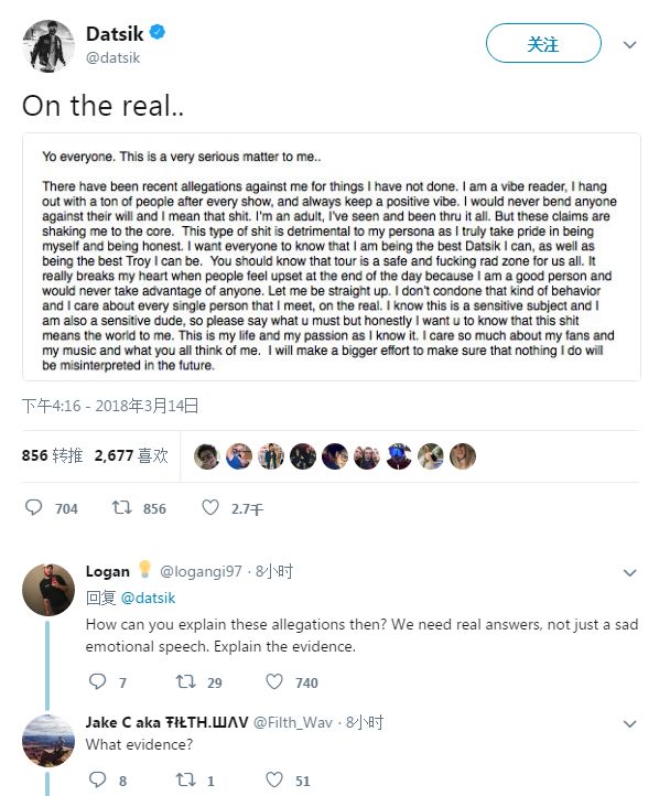 事实上,Datsik已经进行了官方回复,他大概的意思是,“这些都是假的,我根本没有做过这些事。我不会违背他们的意愿,我一直都是很真诚的,我一直都在传播正能量”等等。具体的内容感兴趣的可以自行直译,我们在文章里就不直译了。
