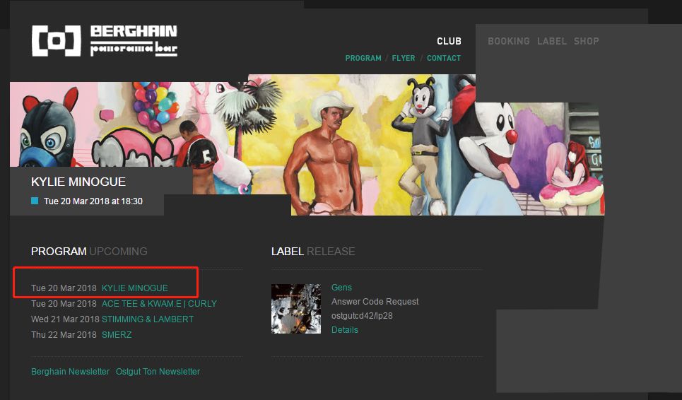来自澳大利亚并在全球出名的流行音乐歌手Kylie Minogue,在3月20日会在Berghain登台演出,作为她的《Golden》新专辑的巡演其中一站。不仅我们大跌眼镜,全球粉丝也与我们的反应一致。这大概是Berghain有史以来最“特别”的一个夜晚和一场活动。