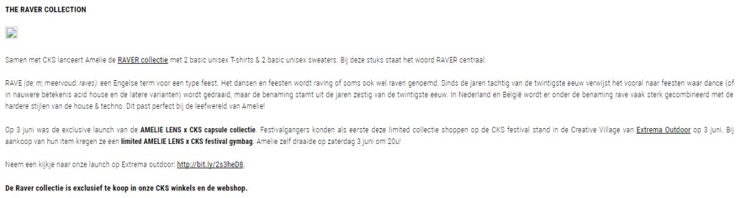 而这款服装所属的品牌CKS更早提到,请Amelie Lens设计的飞行夹克,其实是他们品牌的Raver系列的一款。说白了就是CKS品牌本身带有Raver系列,这个系列面向广大Raver。但谁也想不到ZARA换个颜色就成了自己的款式,你可是大名牌ZARA啊。