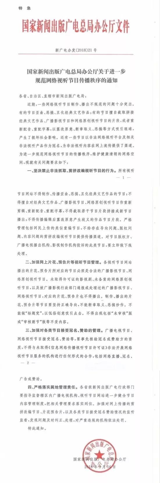 阅读原文视频搬运工早晚要受到正式化、规范化的版权整治,我们也不是第一次写这种话题,所以长话短说。就在3月22日,也就是前天,广电总局下发特急文件,大概意思是“将进一步规范化网络视频的传播”,且大部分字眼主要针对“改编他人视频”。