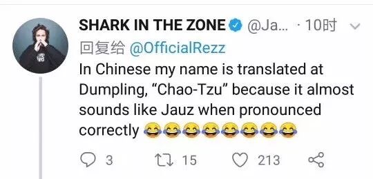 不少墙外粉丝对墙内充满好奇,不停询问“我们要怎么看到这些说法”,意思就是他们很好奇中国的电音场景怎么样,但是不知道怎么眼见为实。Bass House佼佼者Jauz再次与Rezz互动,指出他的中文绰号是“饺子”,因为“饺子”的发音与Jauz几乎一样。