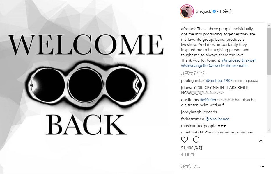 顺便告诉大家,Swedish House Mafia已经重新创建了他们的Instagram账号。根据现有的消息,不排除Swedish House Mafia未来会在中国演出的可能性。