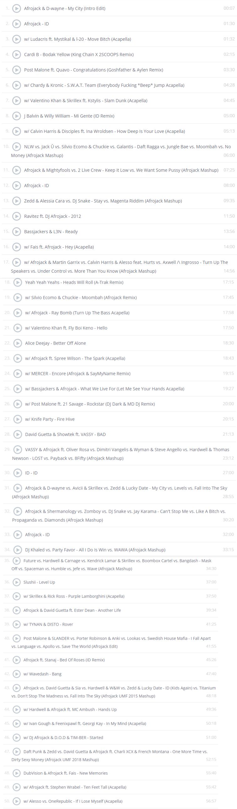 但在主舞台,我们还额外发现了一件有趣的事。平时几年不换歌单的Afrojack也在Ultra Miami更新了他的Playlists。虽然ID不多,但这次Afrojack为演出还是做了一些功课,基本上全程播放Mashup!细节往往证明着大事。Playlists如下。