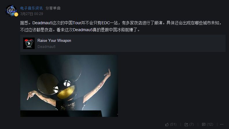 在消息公布以后,我们发现越来越多的人自称要去看Deadmau5,不经考虑地在各个平台上表示“我是为了Deadmau5才买门票的”。当然,Deadmau5在国际上拥有上千万粉丝,大家想去看他也理所应当,但是不是“真的想去”又是另外一个问题。