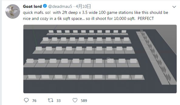 这么一段时间以来,Deadmau5在推特上多次宣传并且准备着他的网吧以及服务器,还把很多重要的思想以及运营的计划公开地告诉了粉丝。这是一个初定900平米的网吧,并且已经进入了招商、引资的阶段,在完成招商、引资以外将会正式问世。