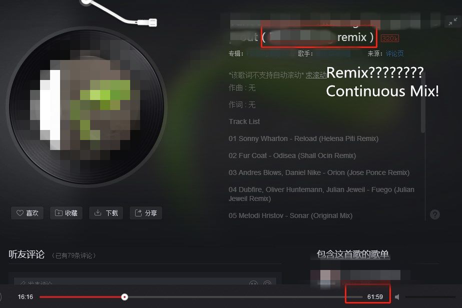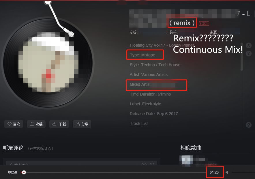 把Continuous Mix称之为自己的Remix,看起来不那么骗人,但很容易让一些不明真相的吃瓜群众以为他们是音乐制作人。但往往有这类坏毛病的家伙,都只是DJ。如果你想指出这类行为,应该针对事情本身。截图仅作例子,偷换概念的不止这么一位选手。