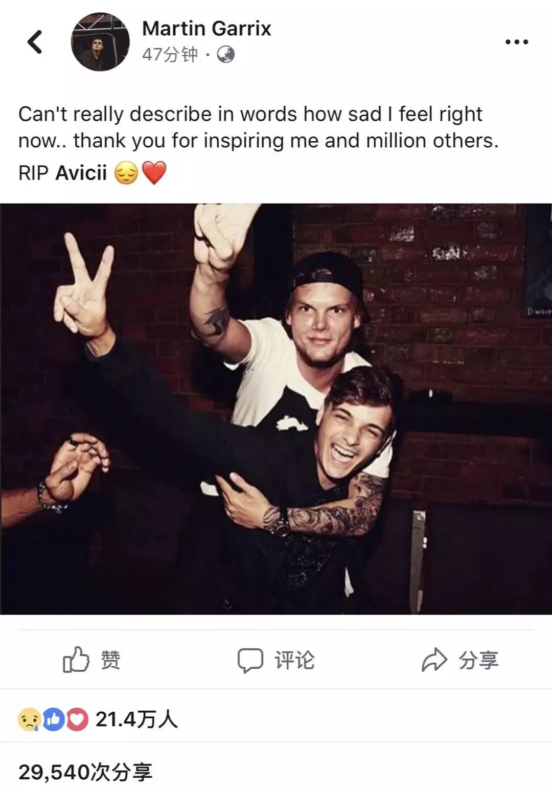 在大家可能已经熟睡,或者在朋友圈因为Avicii离去的消息而炸开锅之后,人们还不愿意相信这是真的。但越来越多西方媒体公布了这则消息,令每个人都不得不被说服甚至流泪。Avicii的团队成员Diana Baron证明了这不是一个玩笑。