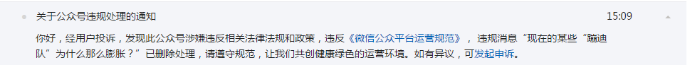 既然某些“蹦迪队”的公众号如此喜欢用撕逼蹭热度,想从我们这里获得关注,当我们写了一篇毫无针对性的,仅仅只是对于“蹦迪队”当前存在的问题的罗列之后,抱团举报我们的文章,那很棒,您们“蹦迪队”都是大哥,我们几个人的小公司当真惹不起。