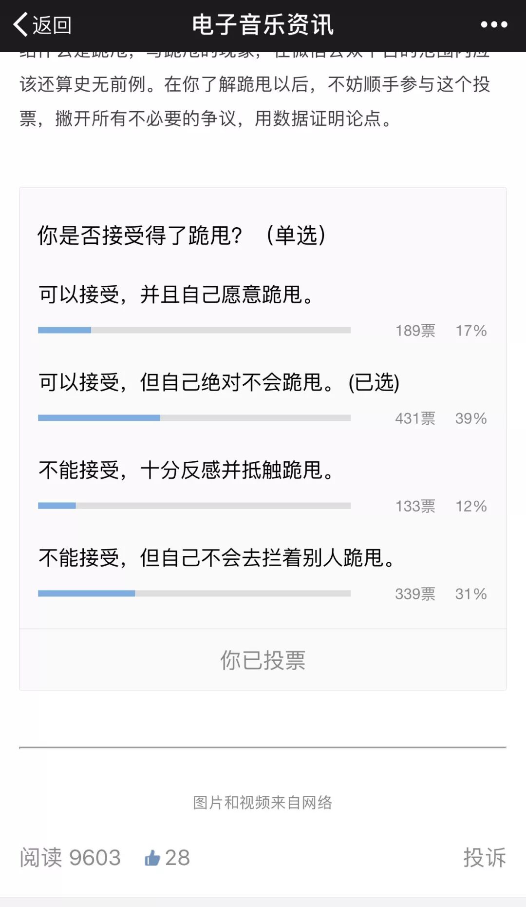 当然,前天的头条文章不是例外。它既包含了主观的内容,也包含了绝对客观的内容。我们实际上向来不反对跪甩,而且在投票里,我们所有成员都选择了“可以接受跪甩”的选项。但可能是因为标题的原因,不少人误解了我们的立场。