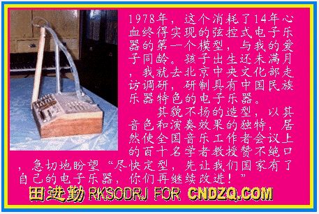 田进勤老师才是中国电子音乐的教父和“第一人”。我们很难以现代的网络联系到田进勤老师,但是他实在太值得我们尊敬。他不仅发明了全中国第一台合成器,还发明了其它40多种电子乐器,开拓了中国电子音乐。向真正的、数十年来的无冕之王中国电音鼻祖致敬。
