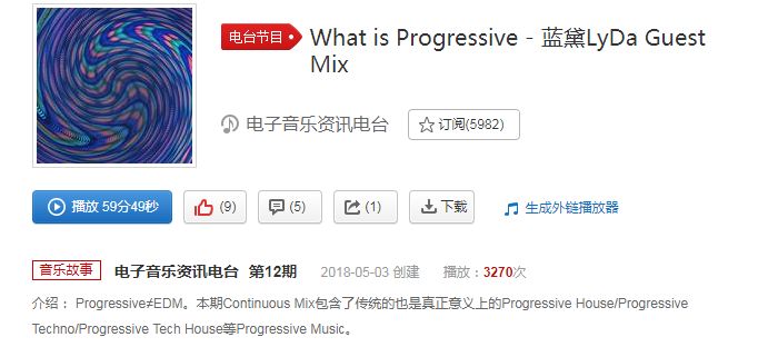 《电子音乐资讯》品牌旗下电台《电子音乐资讯电台》在昨天晚上进行了最新一期节目的更新,为大家呈现了真正的Progressive House/Progressive Techno/Progressive Tech House以及其它Progressive Music。它不同于我们刚才说的以及你所听的Melodic EDM。