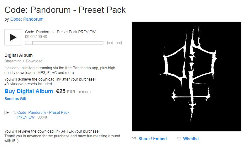 毋庸置疑,Code:Pandorum的Massive预制包是收费的,他设定了25欧元的价格,而这里所包含的所有音色均为自制,不像某些无良素材包可能盗取他人的音色伪装成原创音色。想必即将发布的Serum预制包也会用于销售,但具体售卖金额和发布时间未知。