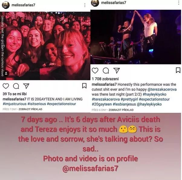 种种迹象均证明Tereza Kačerová很可能只是借着Avicii离世炒作,完全不怕遭天谴地利用Avicii,使Tereza Kačerová遭遇了大量谩骂。近几天Tereza Kačerová尝试着多次回应,但屡次洗白失败,最终Tereza Kačerová在昨天注销了Instagram账号“避风头”。