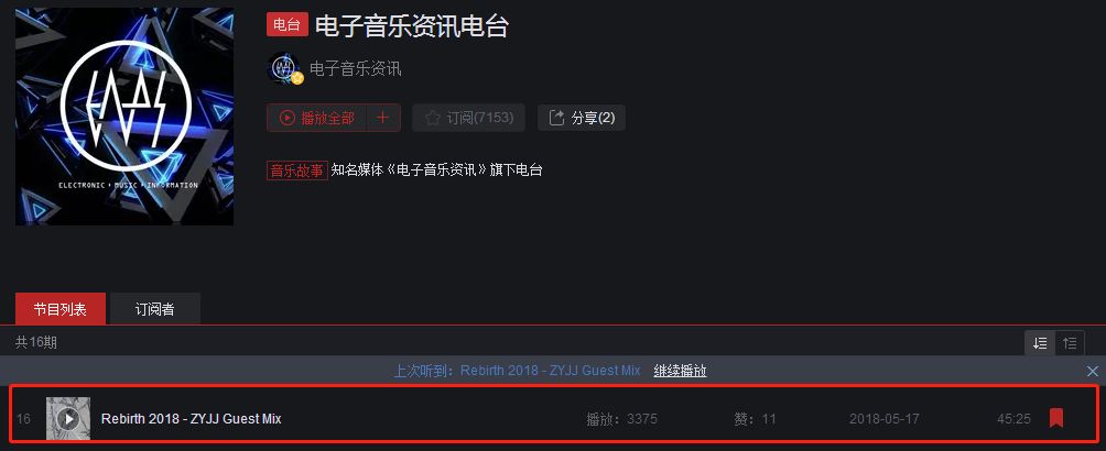 搜索我们的电台《电子音乐资讯电台》,试听《Rebirth 2018 - ZYJJ Guest Mix》,这是一场45分钟的“云蹦迪”。来自中国本土的DJ/音乐制作人ZYJJ向我们展示了他过人的DJ技巧以及个人喜欢的音乐选择。它不是单曲,所以不要中途停止它。