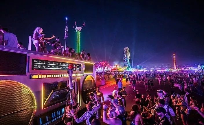 Art Cars,有些时候EDC将它称之为一个舞台,但有些时候EDC又强调它并不是一个舞台。因为Art Cars是一个移动式的“音响派对车”。在这里没有音乐风格定位,只要是舞曲即可,甚至不是舞曲也行。