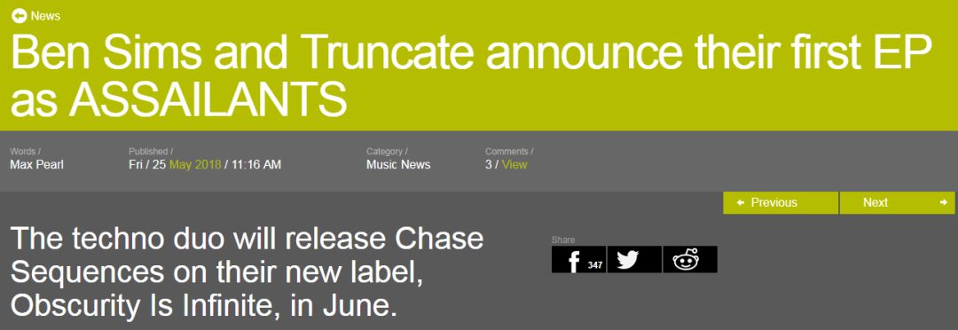 就在昨天,Underground Electronic Music最具影响力媒体Resident Advisor宣布,Ben Sims和Truncate将以他们的组合名义ASSAILANTS,开启全新厂牌Obscurity Is Infinite。与此同时,他们还将在自己的厂牌发布组合的首张EP。