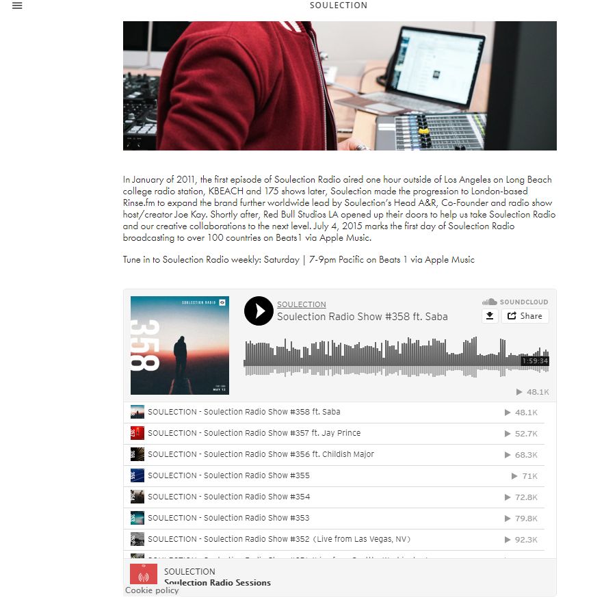 除了是一个厂牌以外,Soulection旗下的电台以及活动都是备受瞩目的。所以很多人对Soulection的了解,更多地停留于电台以及他们的活动主办方标签身上。Soulection Radio Show现在已经更新到358期,而他们举办的活动也一直在西方国家活跃着。