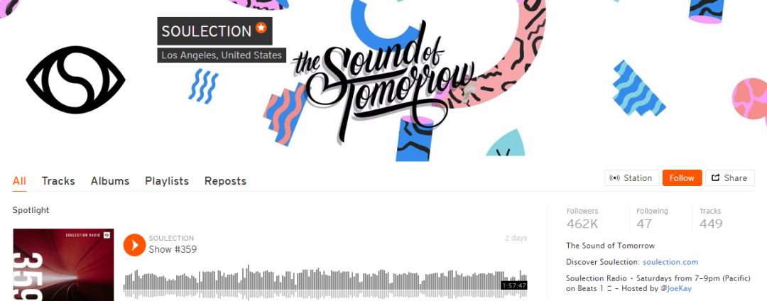 今天说说一个鲜明例子,Soulection。这是一个在外国具有影响力,但在国内可能有些小众,甚至有人把它当成Underground厂牌的一个美国洛杉矶厂牌。从46万Soundcloud粉丝、11万Facebook粉丝、17万Instagram粉丝等数据,都能证明它的大众影响力。