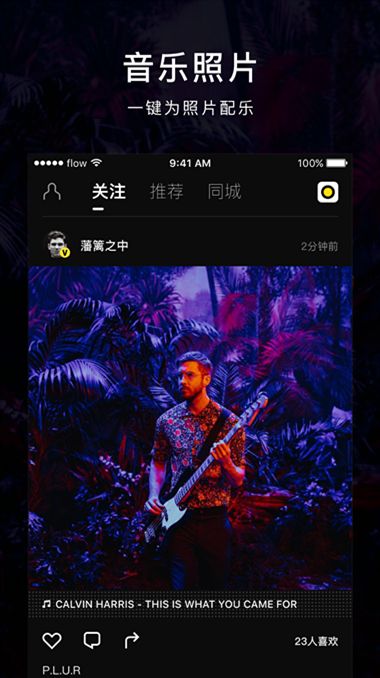 flow是一个结合音乐照片以及电音社交的全新App,这种音乐照片&电音社交网络的结合模式也可能真是全球首创。在电子音乐爱好者越来越多的中国市场,人们总想着添加更多的创意,flow可以轻而易举地实现给照片添加音乐和特效的功能。