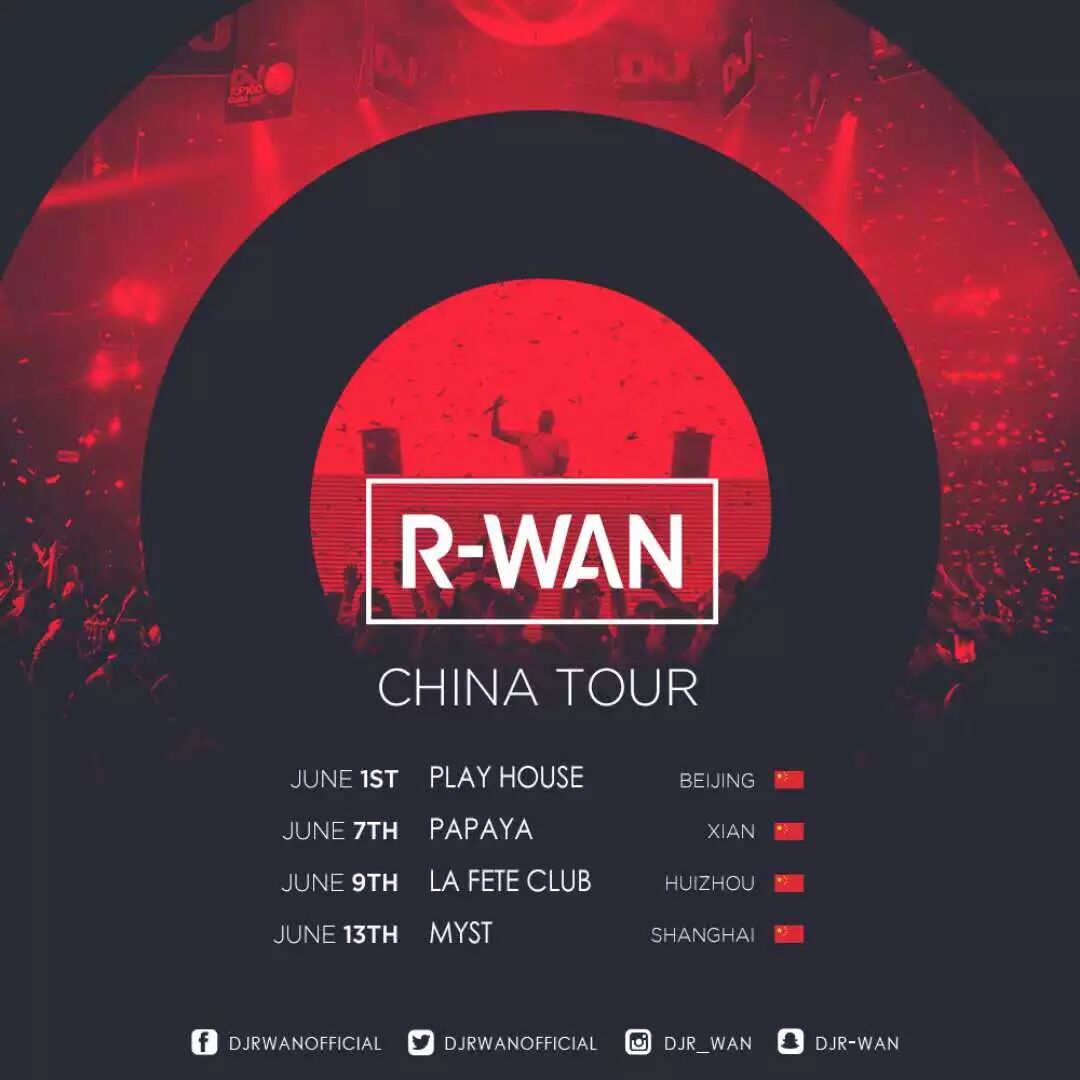 R-Wan在中国终于一步步活跃了起来,人们可以更近距离地获取与R-Wan有关的资讯或者新闻。而就在这几天,R-Wan公布了六月份举行的中国巡演,横跨北京、西安、惠州、上海,四场Club Show。有机会的Ravers不妨亲临现场体验,并了解这位新朋友。
