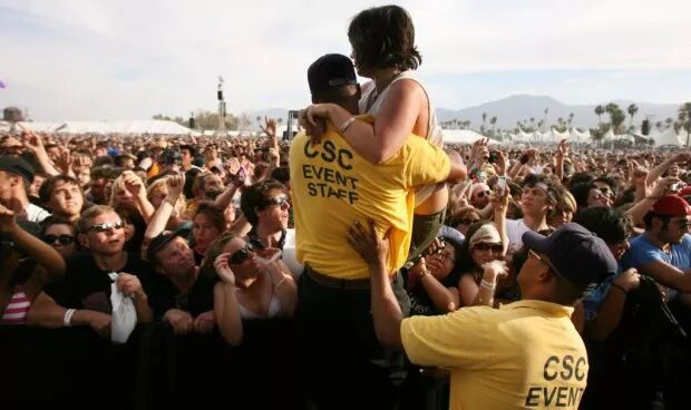 但正因为我们更多地参与到锐舞这项运动中,所有在舞池不跳舞的家伙们都会显得格格不入。哪怕你只是随着鼓组跳跃,也可以算是一种舞曲行为。所以,许多音乐节上严肃至极,纹丝不动,甚至不耐烦和感到无聊的保安们与Ravers有着巨大的“反差萌”。